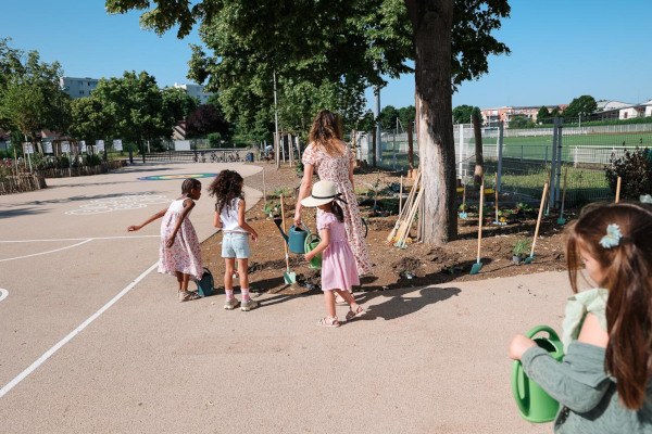 Les aménagements se poursuivent dans les espaces extérieurs des établissements scolaires de la Ville pour créer des îlots de fraîcheur et favoriser le lien des enfants avec la nature.