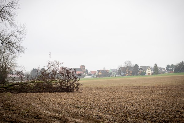 "Là, il y a toute une partie à défricher pour augmenter la surface de stockage", désigne Baptiste Tholozan, chargé d’études environnementales au sein de la direction Eau et risques environnementaux. Le long du Muehlbach à la sortie d’Achenheim, une zone d’expansion de crue est en cours d’aménagement. "L’enjeu est de faire déborder le cours d’eau là où il y a le moins d’impact pour les biens et les personnes", ajoute Antoine Réaud, responsable de département Gestion des cours d'eau et des risques associés.