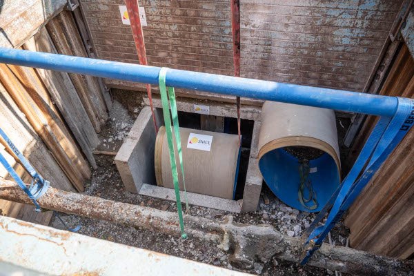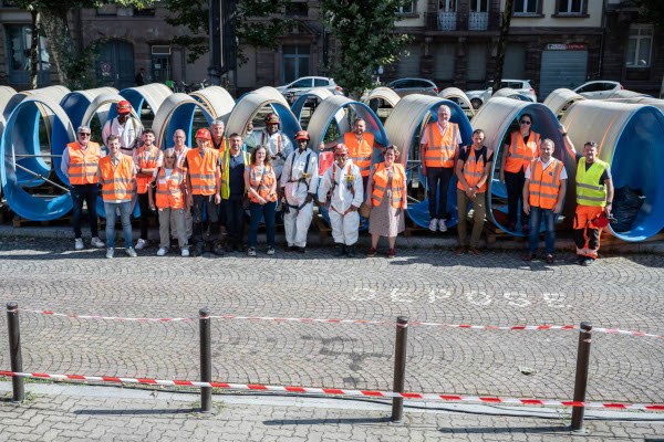 L’Eurométropole est le maître d’ouvrage de ce chantier au budget de 4,4 millions d’euros. Elle en a confié la maîtrise d’œuvre à l’entreprise HMS Réhabilitation et les travaux, débutés le 10 juin, sont réalisés par la société mulhousienne SMCE, dont six ouvriers se chargent de glisser, en chemise dans l’ancien collecteur, ces grands ovales de 2,1 m de haut et 1,3 m de large en polyester renforcé de fibres de verre, et ce, jusqu’à six mètres sous terre. Une fosse a préalablement été creusée pour y transporter les coques à l’aide d’un robot hydraulique. Une fois les coques en place, un coulis de ciment sera ensuite injecté entre celles-ci et le collecteur pour combler le vide annulaire. Pour Pierre Ozenne, conseiller municipal en charge des espaces publics partagés, des voiries, foires et marchés, "les travaux publics font preuve de technicité pour minimiser l’impact sur le quotidien des riverains". Des riverains qui seront invités, lors d’une prochaine assemblée de quartier, "à en savoir plus avec une visite des coulisses du chantier", selon Mina Marina Lafay, conseillère municipale déléguée, élue référente du quartier Orangerie Conseil des XV.