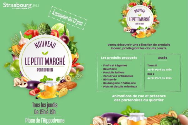 Après le lancement du premier « Petit marché » à Cronenbourg-Saint Florent, à partir du 12 juin, une dizaine de commerçantes et commerçants ambulants installeront leurs étals tous les jeudis de 15h à 19h sur la place de l’Hippodrome, située au Port-du-Rhin.
