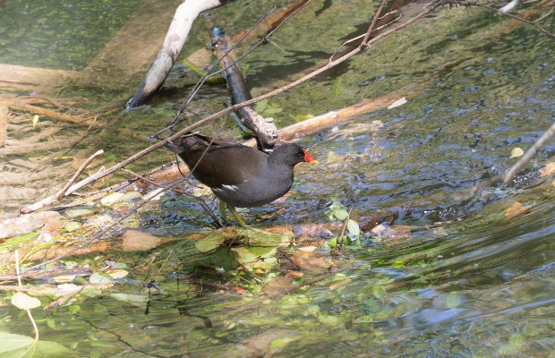 Le Ziegelwasser abrite de nombreux animaux : poules d’eau (photo), canards, cygnes, ragondins, hérons, insectes et oiseaux variés. Ne leur donnez pas de pain : cela peut gonfler dans leurs estomacs et leur être fatal ! Ces animaux préfèrent certains légumes, du blé ou de l’orge. Photo Jérôme Dorkel -
