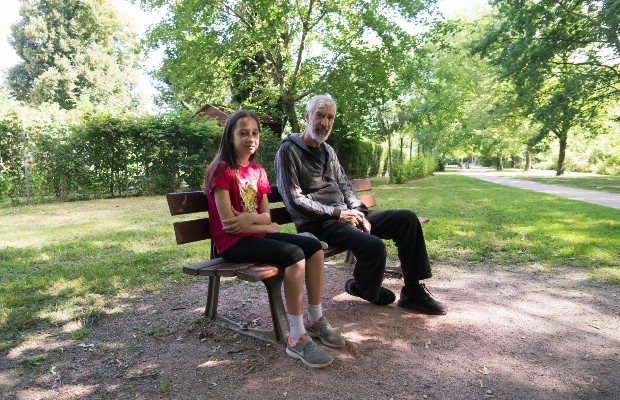 La verdure et l’envie de marcher poussent Alexis et sa fille Anastasia à venir régulièrement se balader. "On s’assoit, on profite de la nature, confie Alexis. Parfois je vais jusqu’au stade de la Meinau avec mon fils pour aller voir le Racing." Photo Jérôme Dorkel -