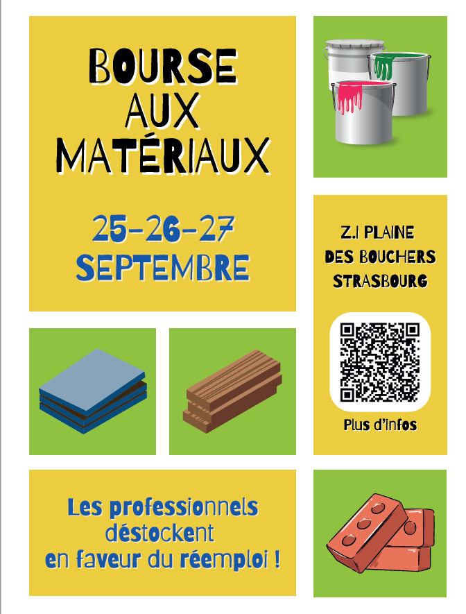 Pendant 3 jours, viens retrouver surplus et matériaux à réemployer à tarif préférentiel en direct des entrepôts des entreprises !