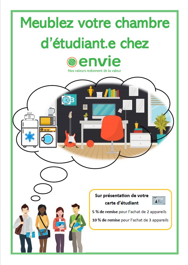 Pour la rentrée des étudiants, Envie propose jusqu’à mi-octobre : 5% de remise pour l’achat de 2 appareils et 10 % pour trois appareils quelle que soit la gamme (petit ou gros électroménager).